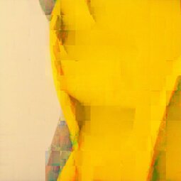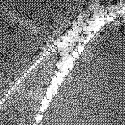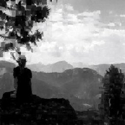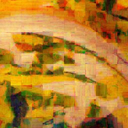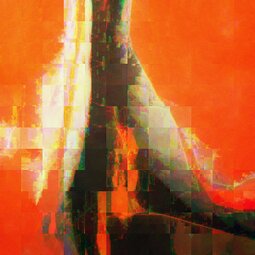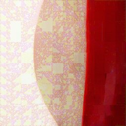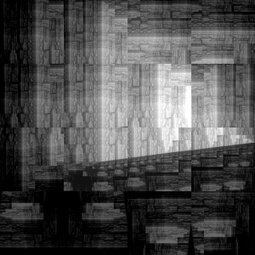 Bei den Bildern „Fraktale Makrozeichnungen“ wurden auf Fotoausdrucken im Postkartenformat Acrylfarben mit Spachteln verteilt, um spontan bestimmte Linien oder Strukturen zu betonen. Diese bemalten Postkarten sind anschließend mit einem Makroobjektiv aufgenommen worden, so dass Ausschnitte von nur wenigen Quadratzentimetern erfasst werden. Als abschließende Verarbeitung wurden diese Aufnahmen einer fraktalen Codierung unterzogen und zwar bewusst so, dass die Auflösung reduziert und der rekursive Anteil der fraktalen Darstellung in Form von Wolken, Dreiecken und anderen Mustern sichtbar wird. Die Serie stellt also eine Kombination der Themen „Malerei aus Foto“, „Makro“ und „Fraktale Darstellung“ dar.