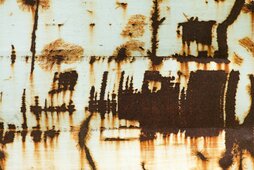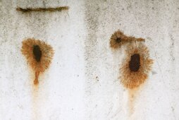 Die Bilder zum Titel "Rost auf Container" zeigen Ausschnitte eines Containers, auf dem durch Rosteinflüsse hervorgerufen, teilweise die Farbe abgeplatzt ist oder kurz davor steht, ab zufallen. Bei diesem Zersetzungsprozess entstehen interessante Motive von Blumen, Seen und Landschaften oder Mikroorganismen.