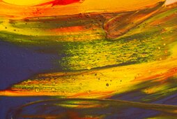 Die Bilder der Serie "Mikroskopische Palettenaufnahmen" zeigen interessant eingetrocknete Farbverläufe auf der Mischpalette, die mikroskopisch aufgenommen im Kleinen vergrößert eigenständige Bilder und Impressionen im Großen beschreiben.