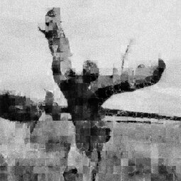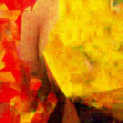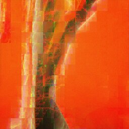 Bei den Bildern „Fraktale Makrozeichnungen“ wurden auf Fotoausdrucken im Postkartenformat Acrylfarben mit Spachteln verteilt, um spontan bestimmte Linien oder Strukturen zu betonen. Diese bemalten Postkarten sind anschließend mit einem Makroobjektiv aufgenommen worden, so dass Ausschnitte von nur wenigen Quadratzentimetern erfasst werden. Als abschließende Verarbeitung wurden diese Aufnahmen einer fraktalen Codierung unterzogen und zwar bewusst so, dass die Auflösung reduziert und der rekursive Anteil der fraktalen Darstellung in Form von Wolken, Dreiecken und anderen Mustern sichtbar wird. Die Serie stellt also eine Kombination der Themen „Malerei aus Foto“, „Makro“ und „Fraktale Darstellung“ dar.