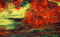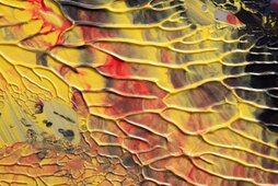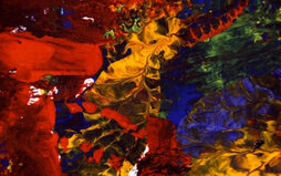 Die Bilder der Serie "Mikroskopische Palettenaufnahmen" zeigen interessant eingetrocknete Farbverläufe auf der Mischpalette, die mikroskopisch aufgenommen im Kleinen vergrößert eigenständige Bilder und Impressionen im Großen beschreiben.