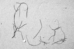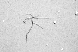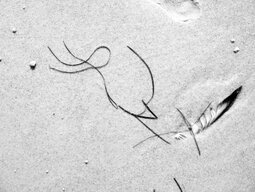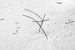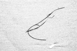 Für die Serie "Graszeichnungen am Strand" wurden Gräser aufgenommen, die während der Flut am Strand angeschwemmt wurden und sich bei einsetzender Ebbe zufällig am Strand neben- und übereinander ablagerten. Diese Gräser wirken bei längerer Betrachtung wie Bleistiftskizzen verschiedener Szenen. Dabei wurde der Kontrast massiv angehoben und der Grauwertaussteuerbereich so angepasst, so dass im Wesentlichen nur noch zwei Grautöne übrig sind.